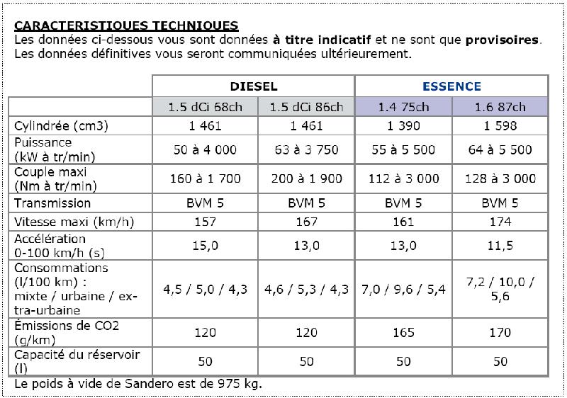 ......la lansare sandero v-a putea fi cumparat doar cu motorizarile pe benzina de 1.4 MPI 75 CP si 1.6 MPI 90 CP.