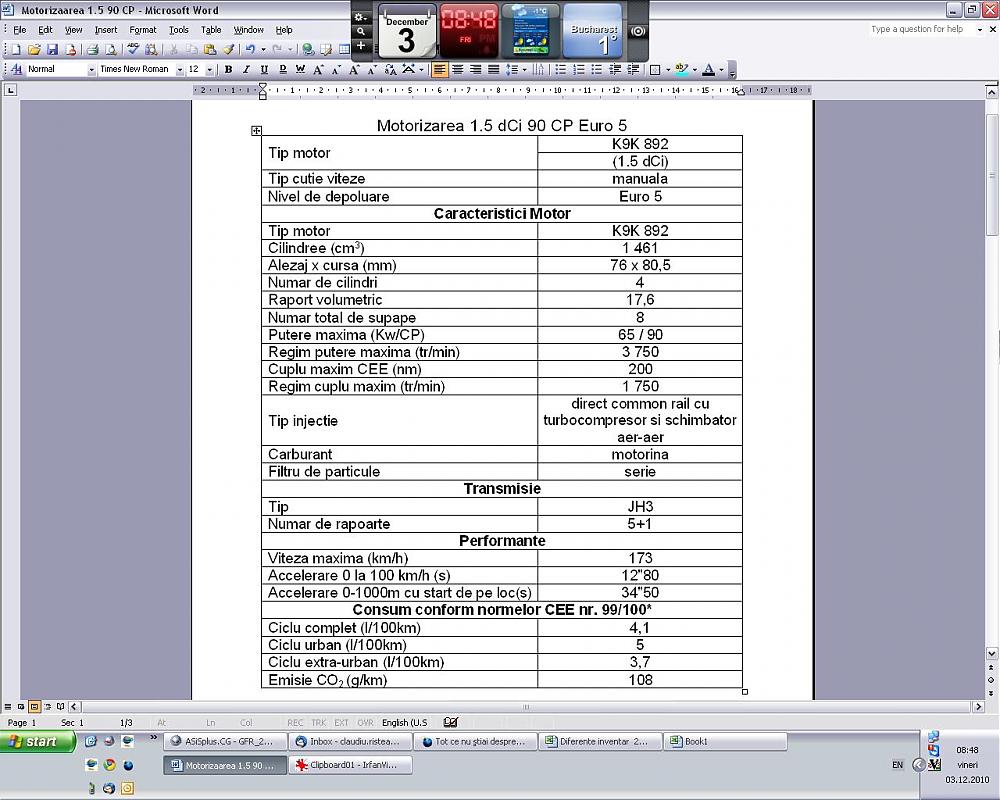 Atasat sunt caracteristicile motorizarii de 1.5 dCI 90 CP Euro 5