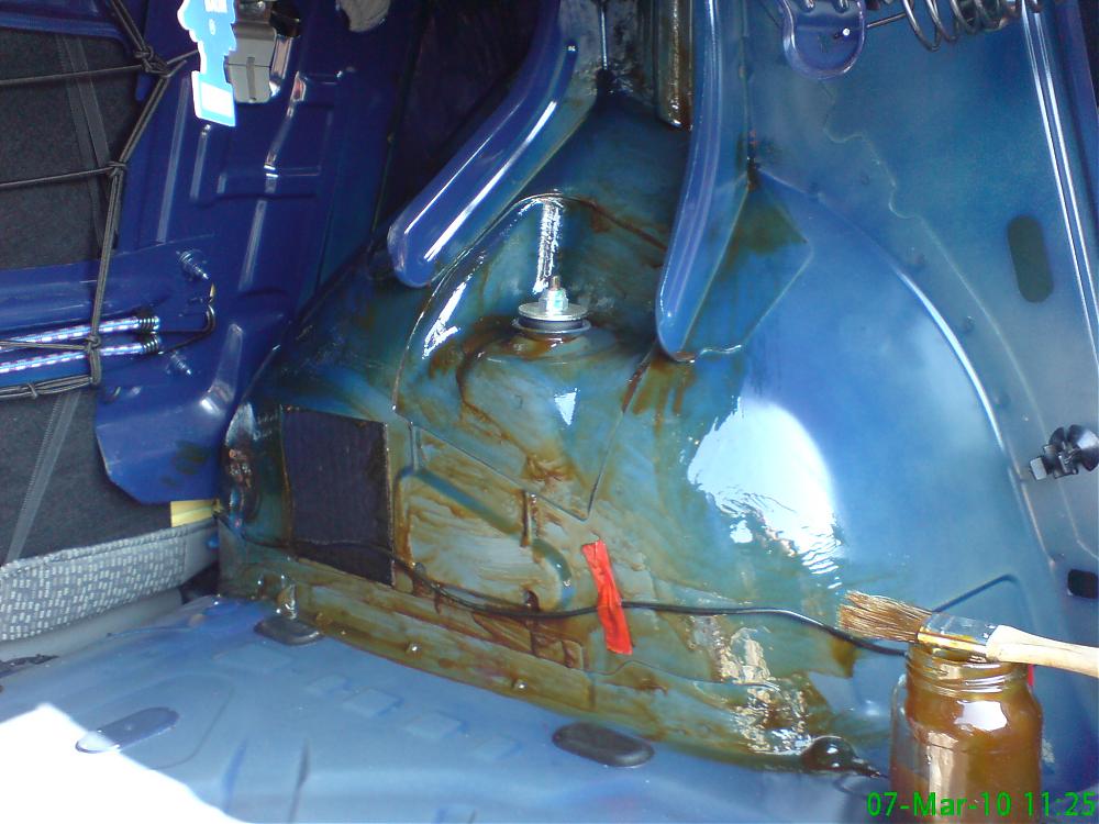 Face condens la greu si mai ales iarna cand este frig afara si este bine sa protejam tabla pe interior, eu am facut asa; am dat jos fetele de usi si de la jumatatea usii in jos am dat cu vaselina la greu si ceara de la Dacia, tot cu ceara am dat si pe oalele rotilor din portbagaj dupa mocheta am dat cu pensula, am ramas uimit cata apa se aduna de la condens. Atasez si cateva poze poate vrea cineva sa incerce.