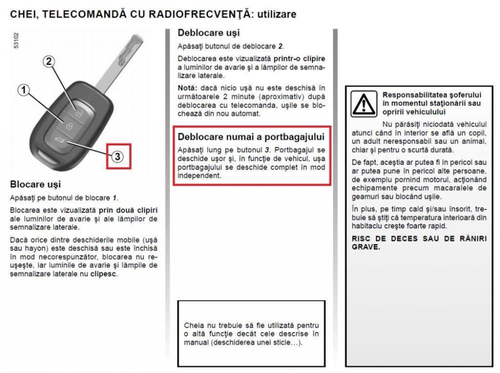 Bun? seara. Am achizionat un sandero II din 2014 care pe cheie are buton pentru deschidere porbagaj. Când ap?s pe buton nu se întâmpl? nimic ?i persoana de la care am luat ma?ina nu ?tie cum sa activeze func?ia.