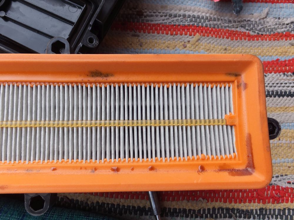 Astazi am inspectat carcasa filtrului de aer, prezinta urme de ulei pe filtru, garnitura filtrului si in interiorul carcasei. Am curatat totul si am spalat cu detergent, urmeaza ca la primavara sa verific din nou. Daca "T-eul" functioneaza corect, ar trebui sa fie curat, pot observa si starea furtunelor, daca au urme de ulei. Ca de obicei, pun poze.